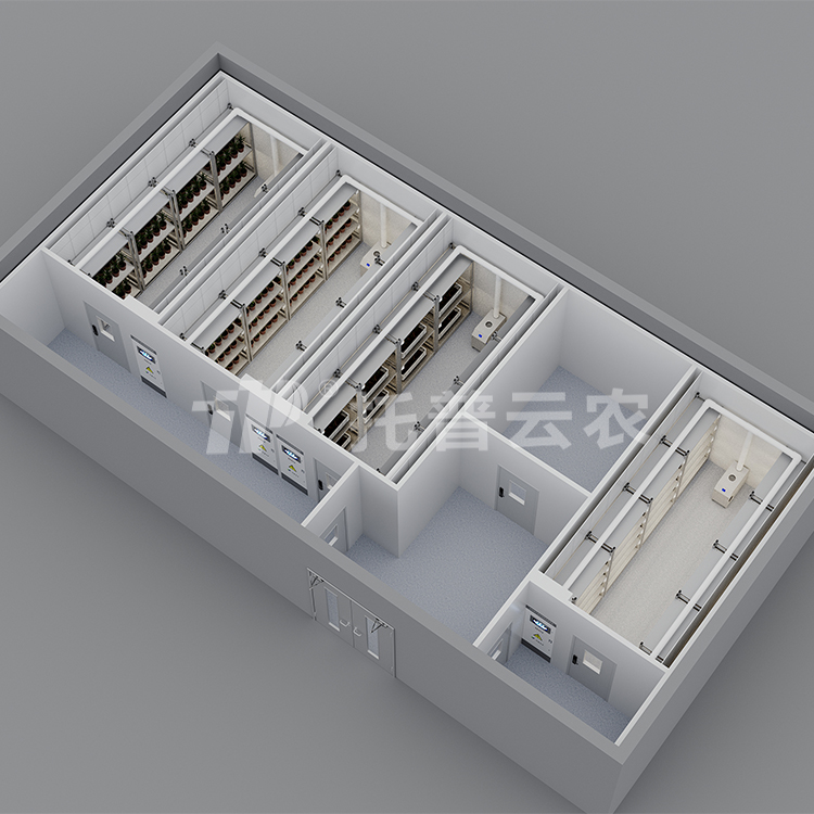 1、环境控制系统:集成保温洁净系统、温恒湿系统、新风系统、灭菌系统、精准气流组织系统,结合工业级传感网络及智能控制系统实时监测并调节温度、湿度、CO₂浓度、风速等参数,确保环境参数稳定匹配作物生长需求。